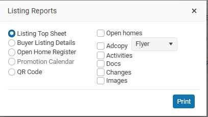 For Residential listings you have the option to print the upcoming open homes.