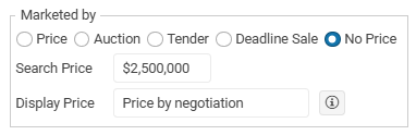 No Price – Search Price. When a listing is being marketed without a price (e.g. Auction, Tender, Deadline Sale or No Price) we will send the Search Price value as the Expected Sale price for Trademe.